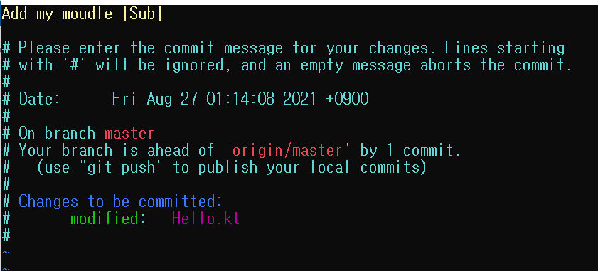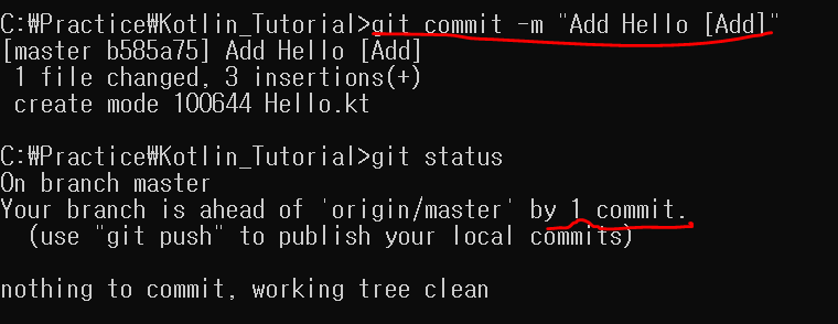 이제 commit을 하고 status를 보면 1 commit이라고 나옵니다.