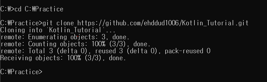 깃허브에 있는 파일을 다시한번 제 폴더로 clone 해보겠습니다.