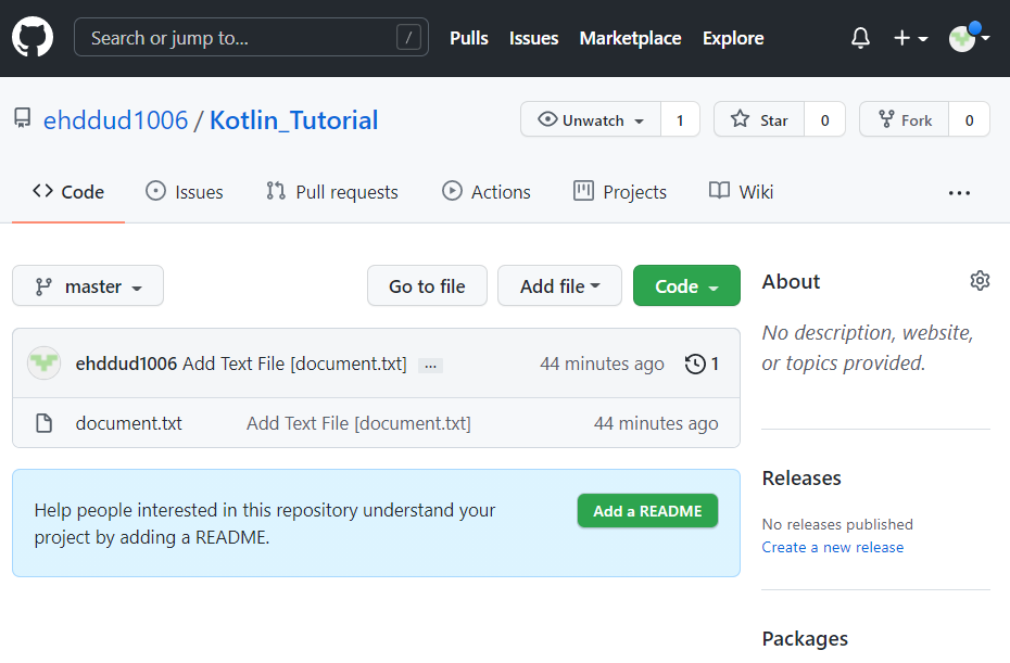 remote로 가보면 hello.kt가 업로드 된 것을 알 수 있습니다.